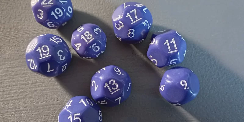 I helped fund a Kickstarter for dice with unusual number ranges. I ended up with several sets that include a d22, d19, d18, d17, d15, d13, d11, and d9, plus a hexadecimal dice (1 to F), a d3 in Roman numerals, and a d26 alphabet dice. My intent was to spring them on my players when their character h...