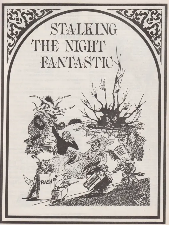 All art contained in this review blog post is scanned from my original copy of **Stalking the Night Fantastic**, used according to the copyright statement on the inside cover: "No part of this book may be reproduced by any means whatsoever without permission of Tri Tac Inc. except in case of brief articles and reviews."