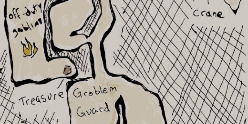 The party comes upon a yawning chasm. On either side are rows of very wide and tall pillars reaching up to the shadows of the cavern roof. One of the pillars appears to have fallen over from one side of the cataract to the other, and can now act as a bridge. The pillar is wide enough that crossing...