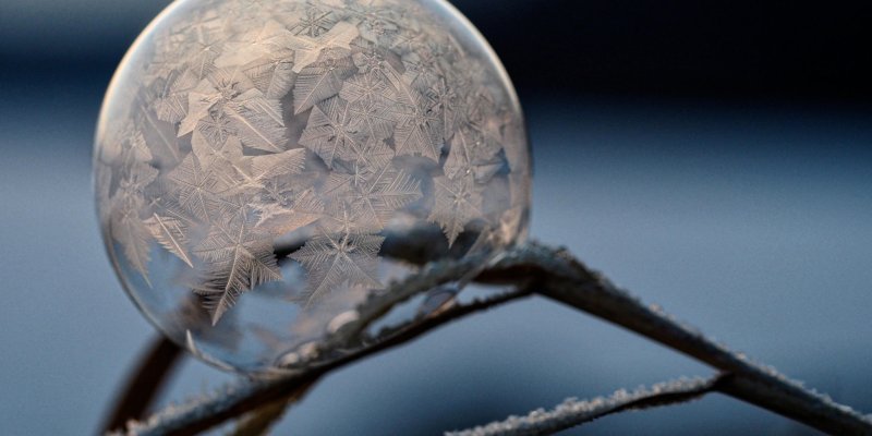 An ornate, clear, crystalline statuette with a gemstone at its core is in fact made of bitter ice.